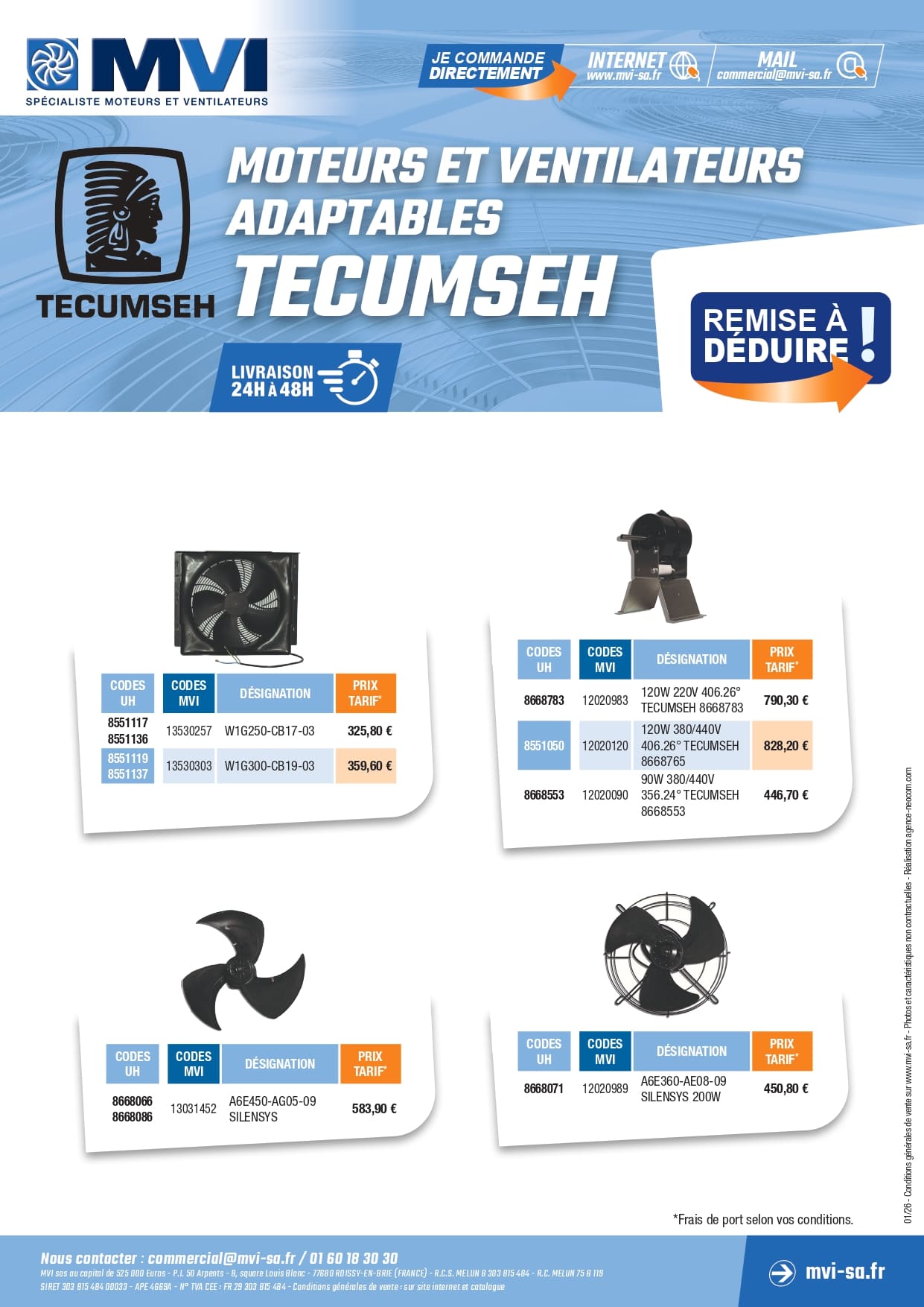 MOTEURS ET VENTILATEURS ADAPTABLES TECUMSEH