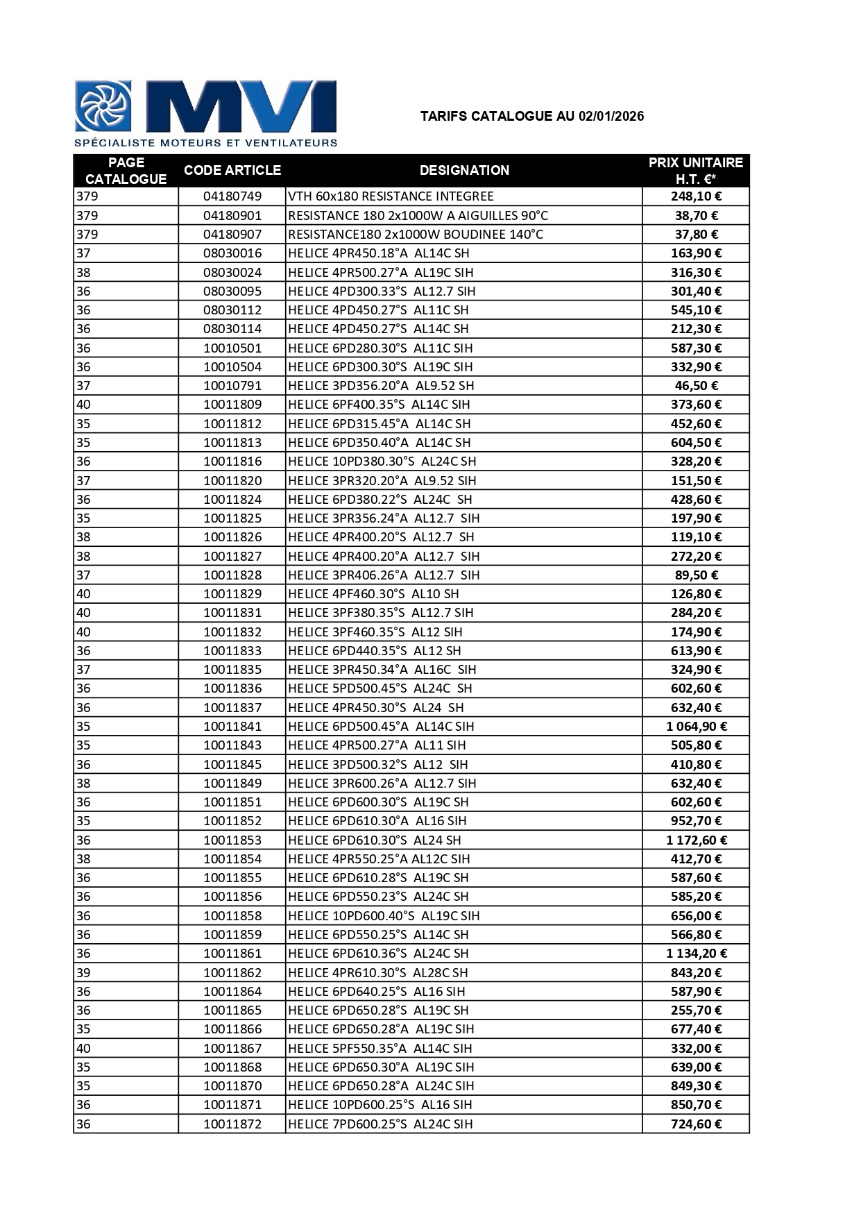Tarifs MVI Catalogue 2026