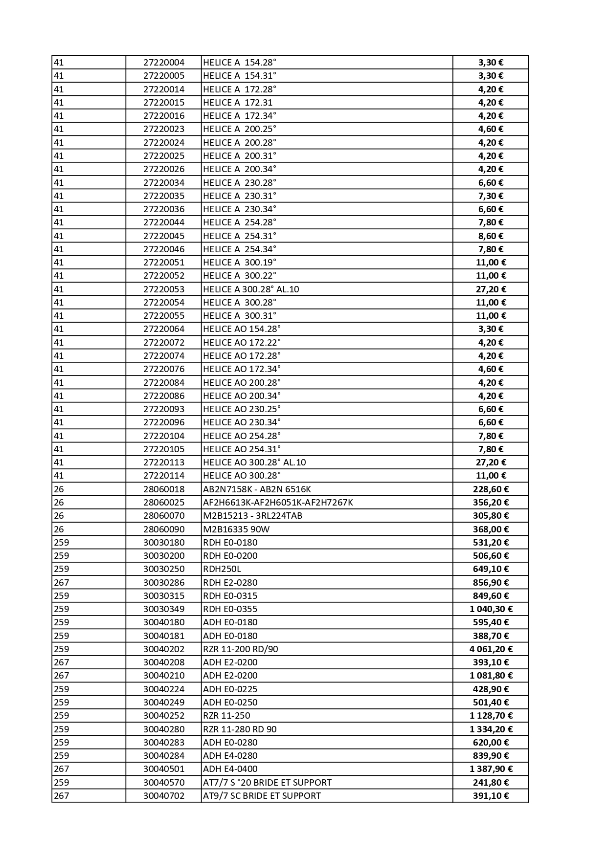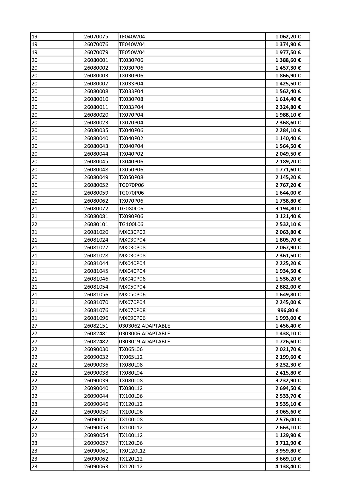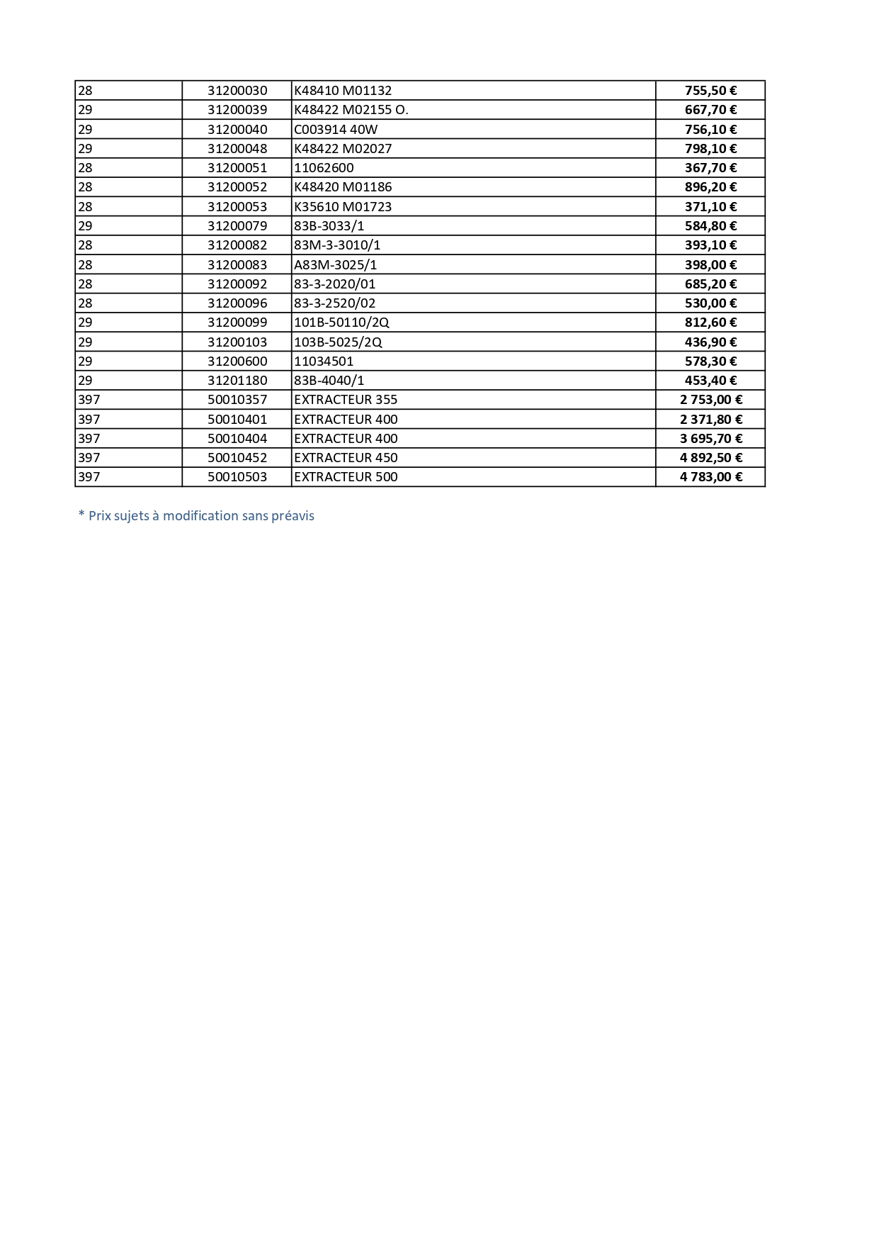 Tarifs 2026